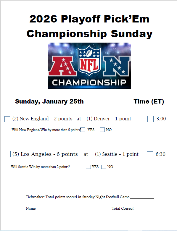 That means just like Week 18, this week’s Pick ‘Em will begin & end on Sunday.
