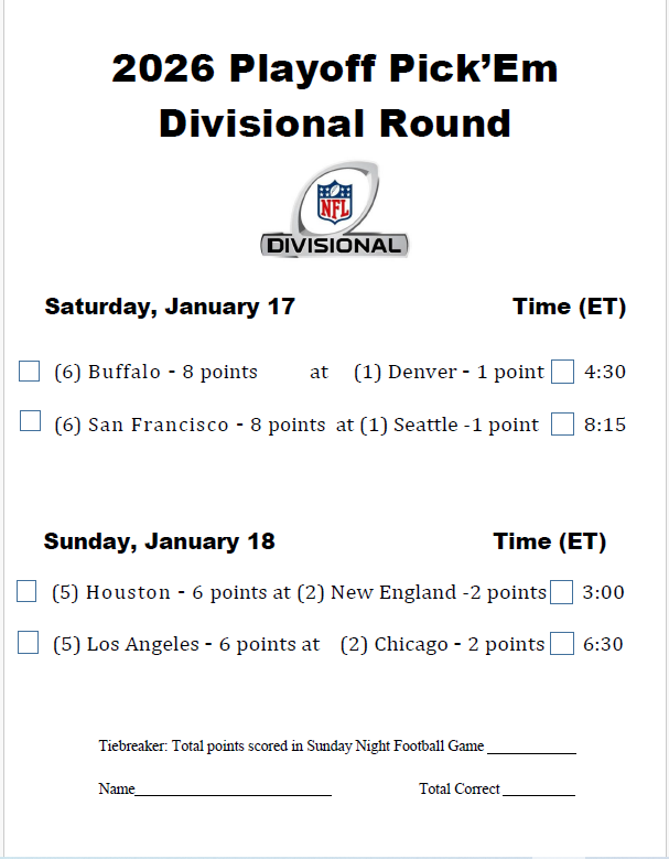 The Divisional Playoff round is here.