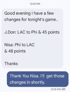 Please be advised that Nisa D has requested both a pick & points change. So let’s get to it! See below: