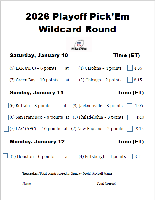 Playoff Pick Sheet (Wildcard Round)