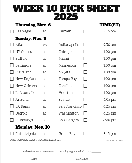 Sheets are due on Thursdays by 5pm as the League’s week begins with the Thursday Night game. The Winner is announced after the Monday Night game and most importantly, payout is Wednesday morning.