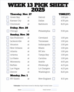 Since this is Thanksgiving Week the sheets are due this Wednesday at 12 midnight. Obviously, that’s in observance of the holiday.